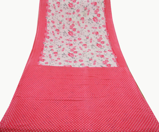 Indian Vintage Sari White & Pink Printed Pure Cotton Sarees Craft Fabric 5Yd Soft Sewing Sarong Wrap Boho Floral Quilting Dress making