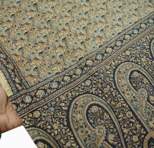 Indian Vintage Beige Saree Pure Silk Printed Sari Craft Fabric 6yd Sewing Craft Dress Making Soft Paisley Quilting Crafting Upcycle Used