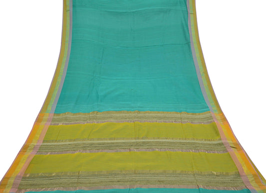Indian Vintage Sarees Green Pure Cotton Hand Woven Sari 5yd Ethnic Floral Craft Fabric Dress making Upcycle Crafting Quilting