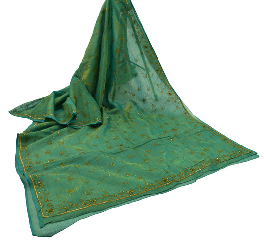 Indian Vintage Heavy Green Saree Pure Cotton Hand Embroidered Sari Craft Fabric 6yd Soft Zari Sequins Sewing Dress making Wedding Sari