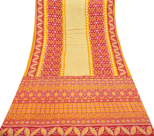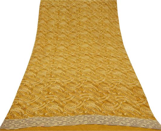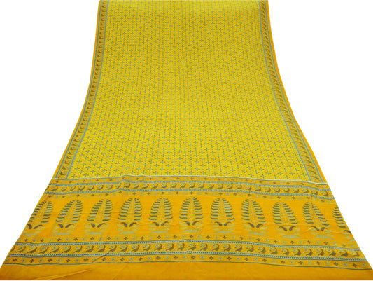 Indian Vintage Yellow & Mustard Saree Pure Crepe Silk Printed Sari 5yd Sewing Floral Soft Craft Fabric Wrap Fashion Dress making Crafting