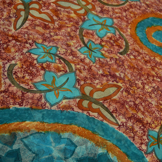 EXCELLENT QUALITY Indian Vintage Orange & Green Saree Pure Crepe Silk Printed Sari Craft Fabric 5yd Sewing Floral Soft Wrap Dress making