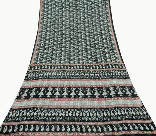 Indian Vintage Black & White Saree Printed Pure Cotton Indian Sari Craft Fabric 5Yd Sewing Soft Sarong Wrap Boho Paisley Quilting Crafting