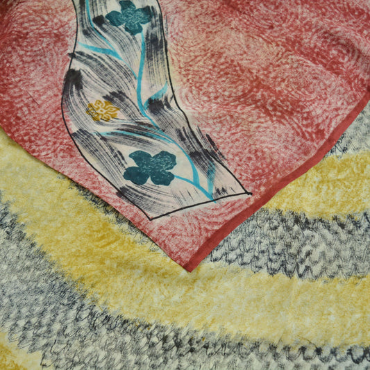 Indian Vintage Sari Yellow & Red Warli Print Pure Cotton Saree Craft Soft Fabric 5Yard Sewing Sarong Wrap Boho dears