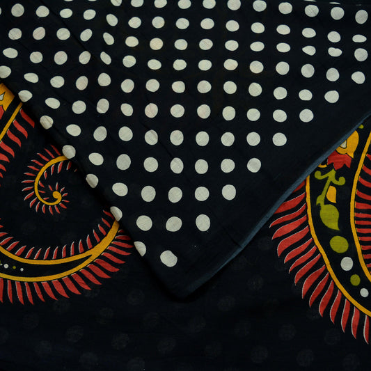 Indian Vintage Black Saree Batik Printed 100% Pure Cotton Indian Sari Craft Fabric 5Yd Soft Sewing Sarong Wrap Boho Quilting Upcycle