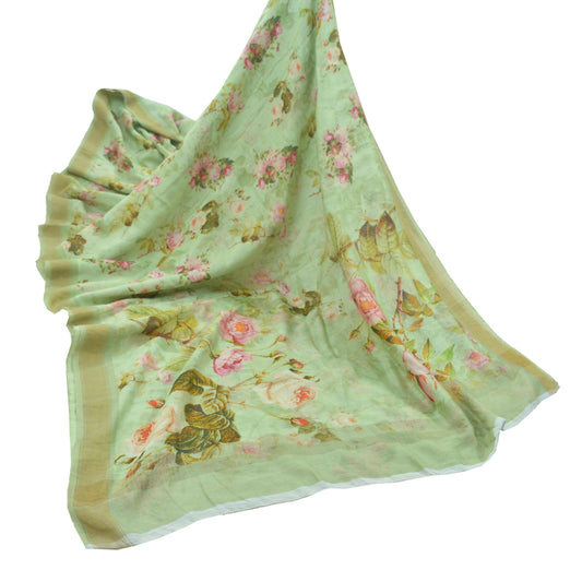 Indian Vintage Green Saree Digital Printed Blend Cotton Sari Craft Fabric 5Yd Sewing Sarong Wrap Boho Floral Dress Making Crafting