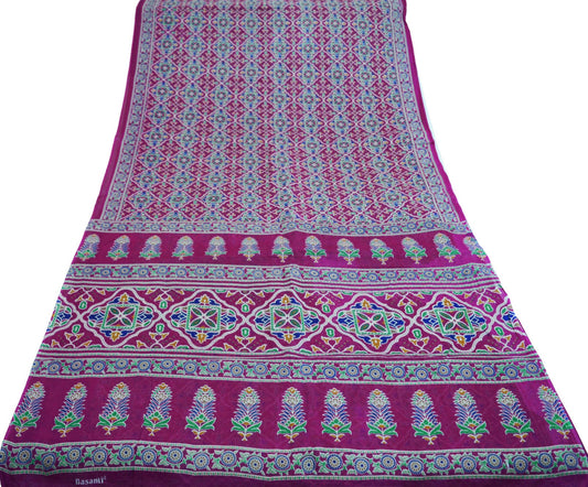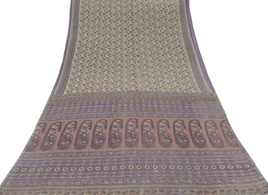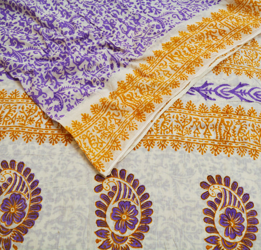 Indian Vintage Sari Purple & Ivory Pure Cotton Printed Saree 5Yd Craft Fabric Sewing Sarong Wrap Boho Floral Quilting crafting dressmaking