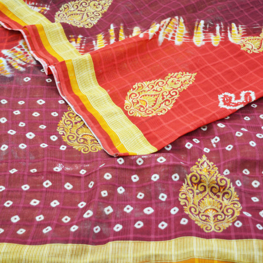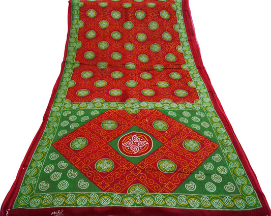 Indian Vintage Sari Red Pure Cotton Bandhani Printed Sarees Fabric 5yd Sewing Craft Fabric DressMaking Soft
