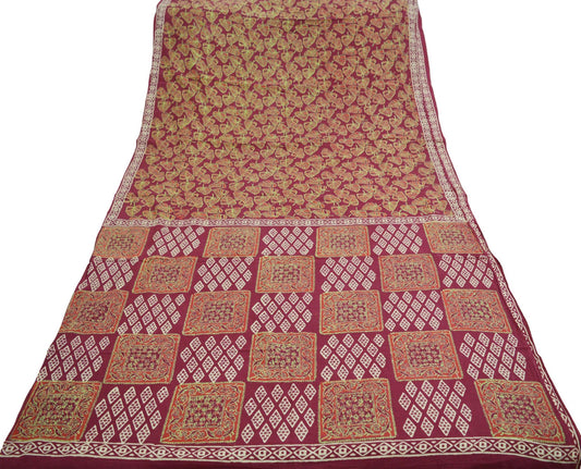 Indian Vintage Beige & Maroon Saree Pure Crepe Silk Woven Printed Sari 5yd Sewing Soft Craft Fabric Wrap Dress making Crafting Quilting