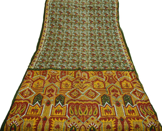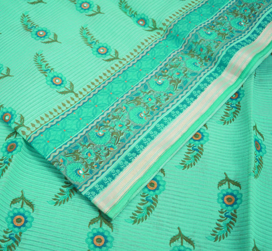 Indian Vintage Sari Green Printed Sarees Pure Cotton Craft Fabric 5Yd Soft Sewing Sarong Wrap Boho Floral Dress making Quilting Crafting