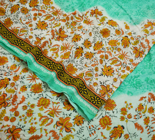 Indian Vintage Sari Green Printed 100% Pure Cotton Saree Craft Soft Fabric 6Yard Sewing Sarong Boho Floral