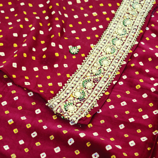 Indian Vintage Maroon Saree Hand Embroidered Bandhani Printed Sari 100% Pure Satin Silk Indian Sari Fabric 5yard Soft Craft Fabric Beaded