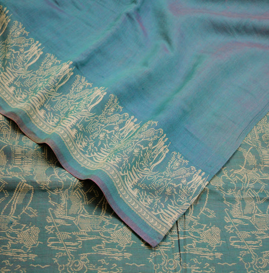 Vintage Blue Saree Pure Cotton Hand Woven Indian Sari 5Yard Soft Floral Ethnic Humans