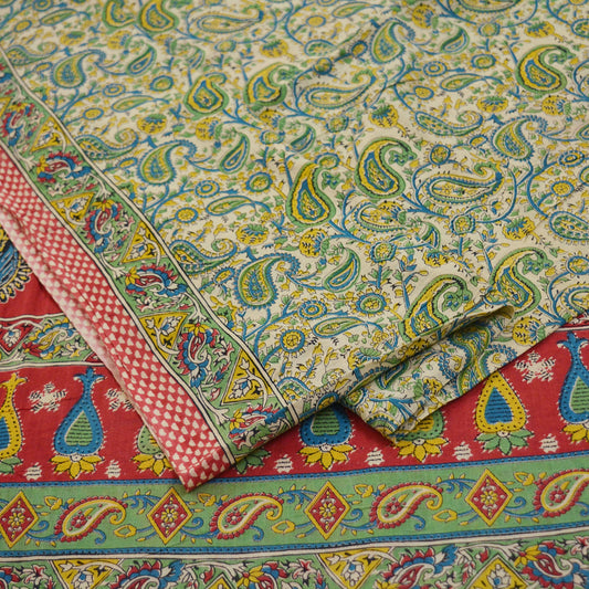 Indian Vintage Sari Multi Printed 100% Pure Cotton Saree Craft Soft Fabric 5Yard Sewing Sarong Wrap Boho Paisley Design