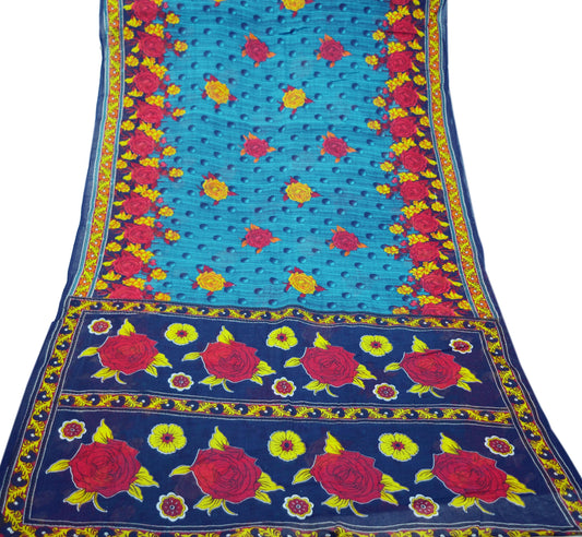 Indian Vintage Sari Blue Printed 100% Pure Cotton Saree Craft Fabric 5Yard Sewing Sarong Wrap Boho Floral
