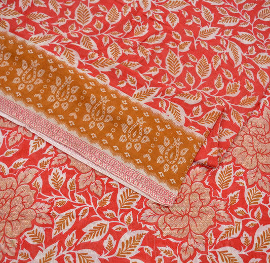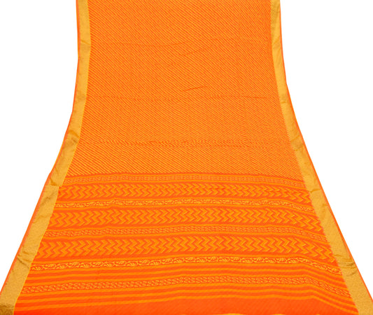 Indian Vintage Saree Saffron 100% Pure Silk Printed Sari 6yd Sewing Craft Fabric DressMaking Soft Wrap Dear Lady