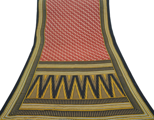 Indian Vintage Sari Red & Black Printed 100% Pure Cotton Saree Craft Fabric 5Yd Sewing Sarong Wrap Boho Floral Upcycle Quilting Crafting