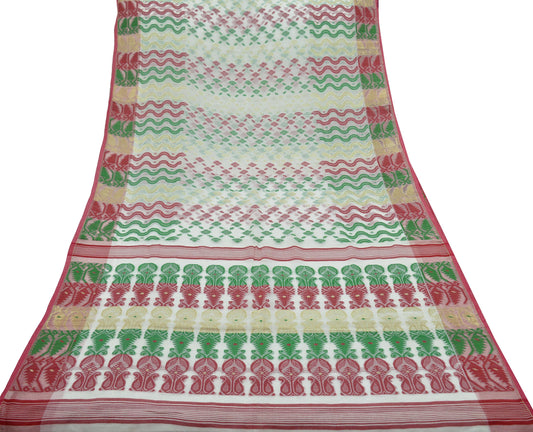 Indian Vintage Sarees White Pure Cotton Hand Woven Jamdani Sari 5yd Ethnic Floral Craft Fabric Dress making Upcycle Crafting Quilting Zari
