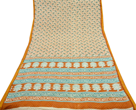 Indian Vintage Sari Orange 100% Pure Cotton Printed Sarees 5Yd Craft Fabric Soft Sewing Sarong Wrap Stripes Quilting Crafting Upcycle Used