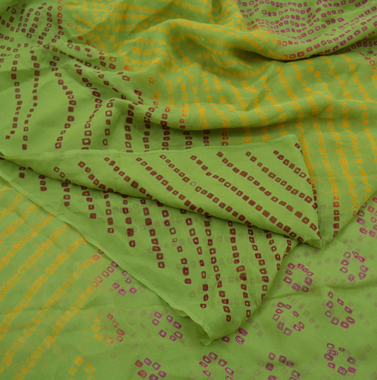Women Vintage Green Saree Pure Georgette Silk Bandhani Printed Sari Craft Fabric Sewing 5Yard Soft Light Sari Dress Making Quilting Crafting