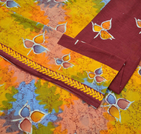 Indian Vintage Sari Batik Printed Sarees Pure Cotton Craft Fabric 5Yd Soft Sewing Sarong Wrap Boho Quilting Crafting Upcycle Dress making