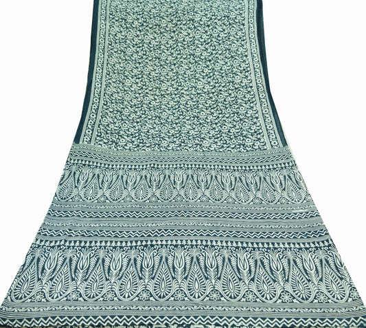 FREE SHIPPING Indian Women Vintage Gray Saree 100% Pure Georgette Silk Printed Sari Sewing 5yard Soft Craft Floral Design Wrap Boho
