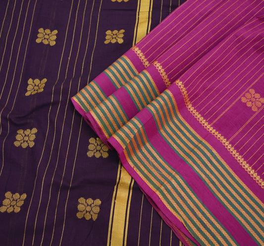 Indian Vintage Sari Purple & Brown Pure Cotton Hand Woven Saree 5yard Ethnic Soft Floral Design