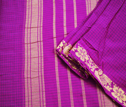 Vintage Sari Purple Pure Cotton Hand Woven Saree Golden Zari 5Yard Soft Floral Golden Zari