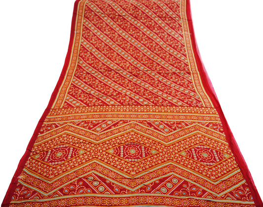 Indian Vintage Sari Red Pure Cotton Bandhani Printed Sarees Fabric 5yd Sewing Craft Fabric DressMaking Soft
