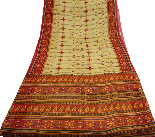 Indian Vintage Sari Red & Beige Printed 100% Pure Cotton Saree Craft Soft Fabric 5Yard Sewing Sarong Wrap Floral