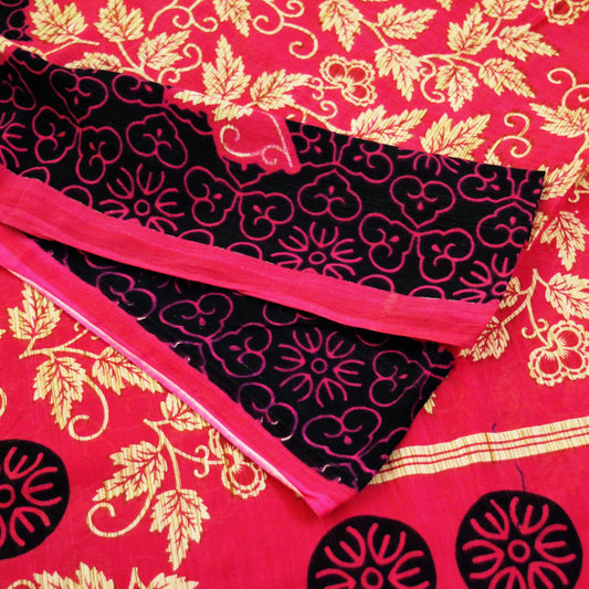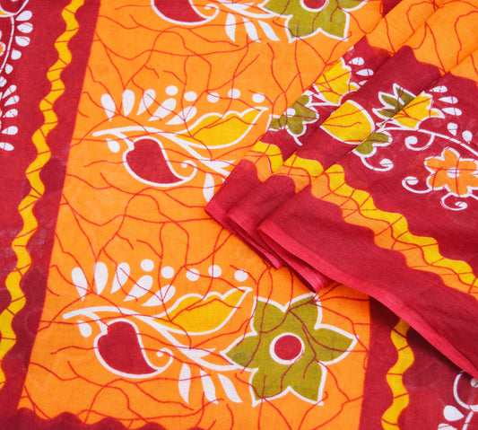 Indian Vintage Sari Red & Orange Batik Printed 100% Pure Cotton Saree Craft Soft Fabric 5Yard Sewing Sarong Wrap Boho