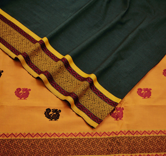 Indian Vintage Sari Black Pure Cotton Hand Woven Saree 5yard Ethnic Soft