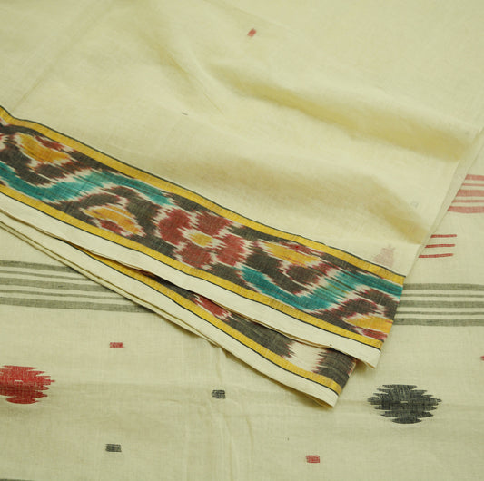 Indian Vintage Off-white Hand woven Sambalpuri Ikat sari Saree Pure Cotton Indian Sari Fabric 5Yard Ethnic Chackra Border