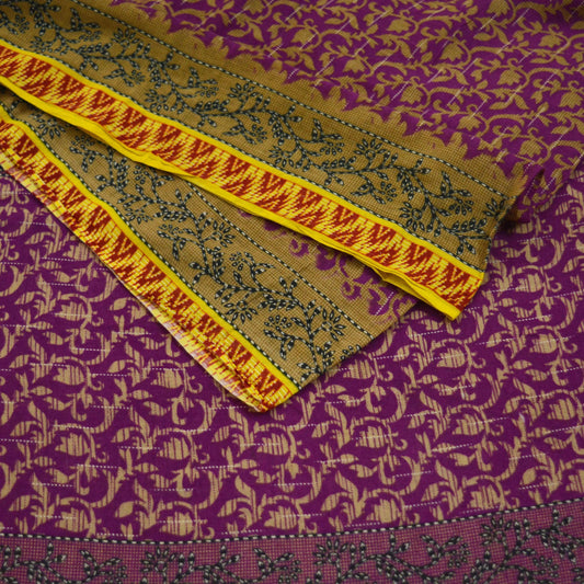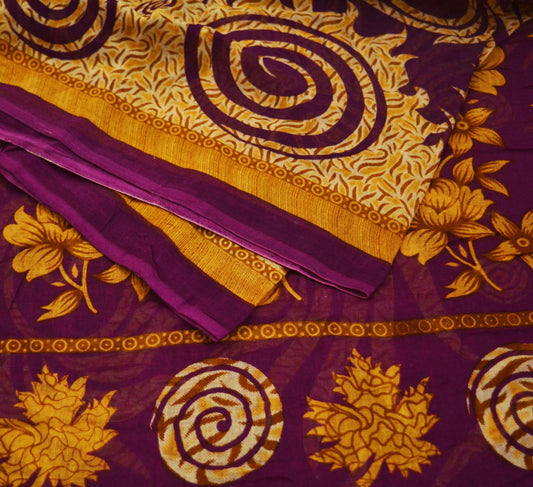 Indian Vintage Sari Purple Pure Cotton Printed Saree 5Yard Craft Fabric Soft Sewing Sarong Wrap Boho Floral Quilting crafting dressmaking