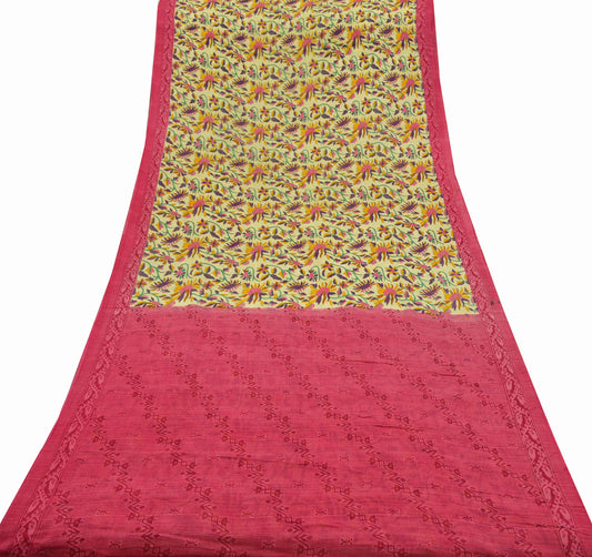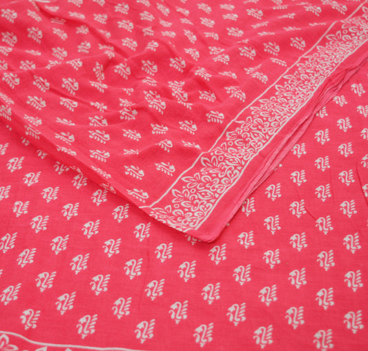 Indian Vintage Pink & Beige Saree Printed 100% Pure Cotton Sari Craft Fabric 5Yd Soft Sewing Sarong Wrap Floral Dress making Quilting