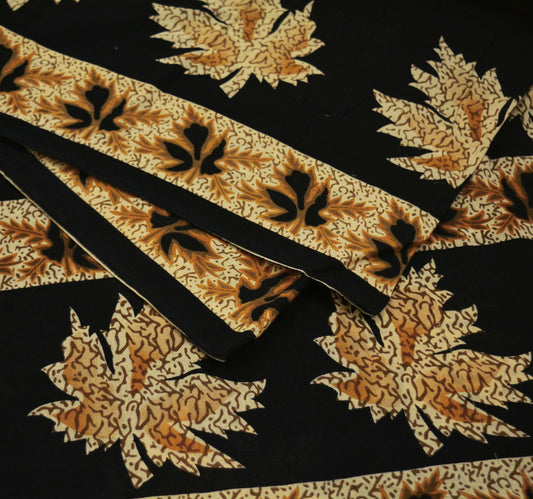 Indian Vintage Sari Black Printed 100% Pure Cotton Saree Craft Fabric 5Yard Sewing Sarong Wrap Boho Floral