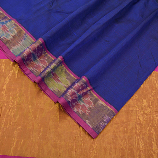 Indian Vintage Sari Blue & Pink Blend Cotton Hand Woven Saree Fabric 5Yd Golden Zari Border Fringes on pallu Dress making Bollywood Sarees