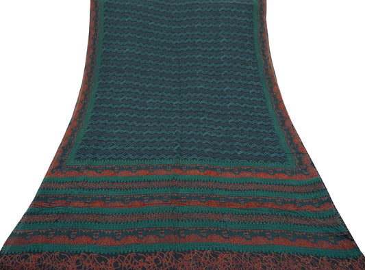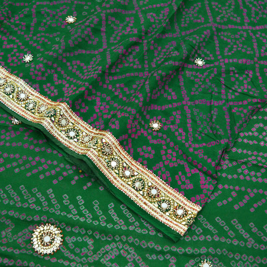Indian Vintage Green Saree Pure Silk Hand Embroidered Bandhani Printed Sari Indian Sari Fabric 5yard Soft Zardozi Craft Fabric Soft