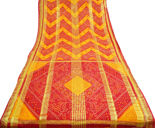 Indian Vintage Sari Red Pure Cotton Bandhani Printed Sarees 5yd Sewing Craft Fabric DressMaking Soft