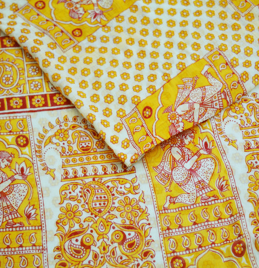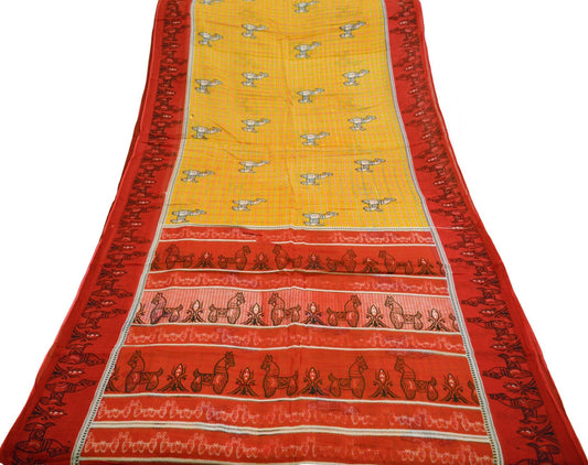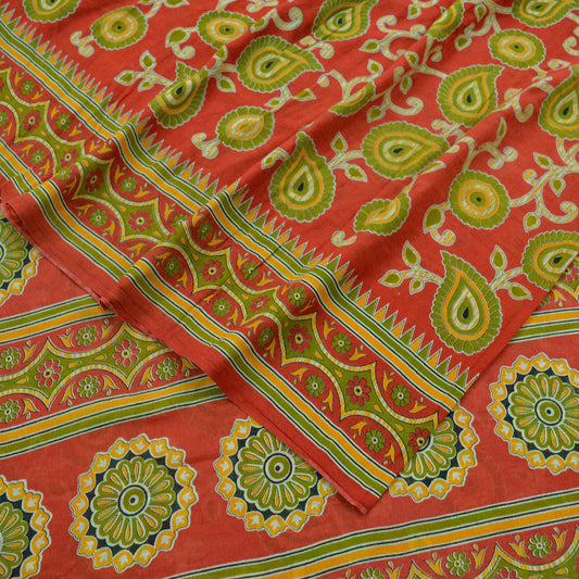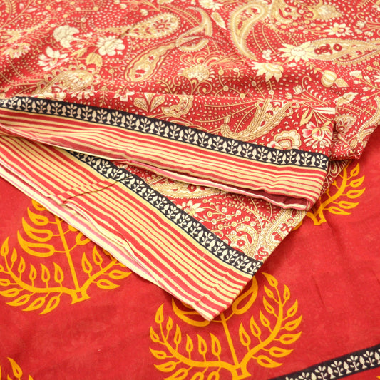 Indian Vintage Sari Red & Mustard Pure Cotton Printed Sarees Fabric 5yd Sewing Craft Fabric DressMaking Soft