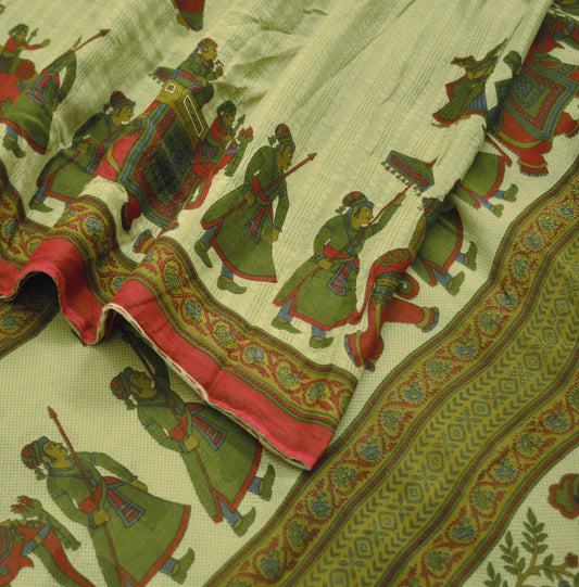 Indian Vintage Sari Beige Printed 100% Pure Cotton Saree Craft Soft Fabric 5Yard Sewing Sarong Wrap Humans Dears