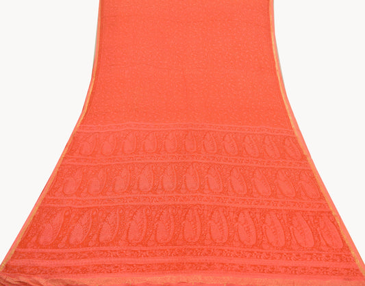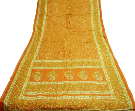 Indian Vintage Saffron Saree Art Silk Printed Sari 6yd Sewing Craft Fabric Soft Wrap Fringes Soft Crafting Quilting Upcycle