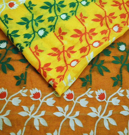 Indian Vintage Sari Red & Yellow Hand Woven saree Cotton Fabric 5Yard Floral Soft Golden Zari