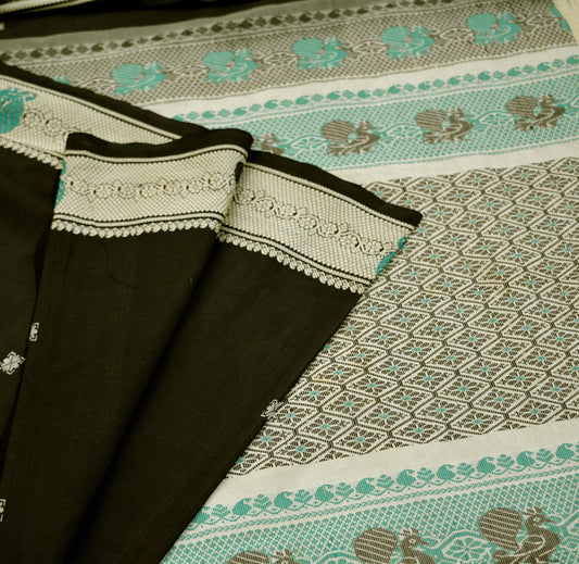 Indian Vintage Sari Black Pure Cotton Hand Woven Baluchari Saree 5yard Ethnic Lady Design