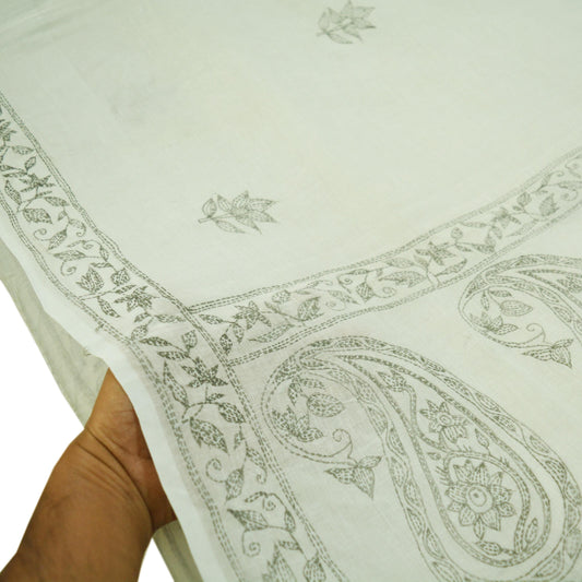 Indian Vintage Sari White Pure Cotton Hand Embroidered Kantha Saree Fabric 6yard Sewing Floral Soft Sequins