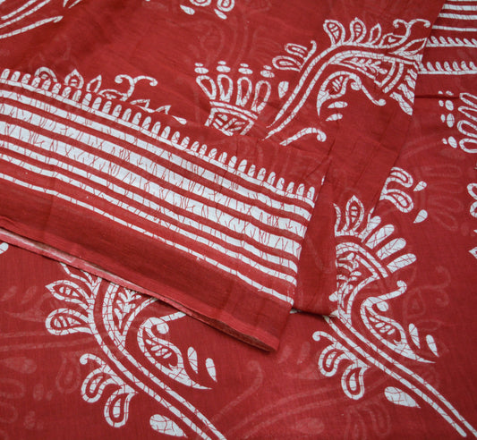 Indian Vintage Sari Maroon & Ivory Printed Pure Cotton Saree Craft Soft Fabric 5Yard Sewing Sarong Wrap Boho Paisley