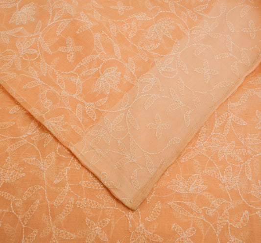 Indian Vintage Sari Cotton Peach Handmade Chikankari Saree Fabric 5Yard Sari Ethnic Floral