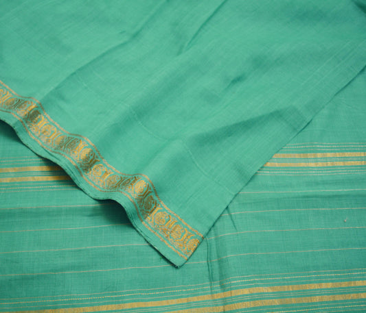 Vintage Sari Green Pure Cotton Hand Woven Saree 5Yard Soft Floral Golden Zari