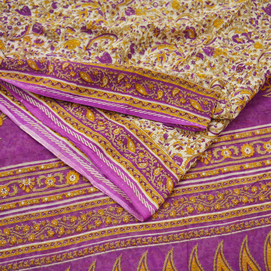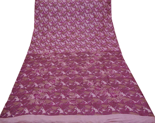 Indian Vintage Sarees Pink & Purple 100% Pure Silk Embroidered Printed Sari 5yd Sewing Craft Fabric Dress Making Soft Wrap Quilting Crafting
