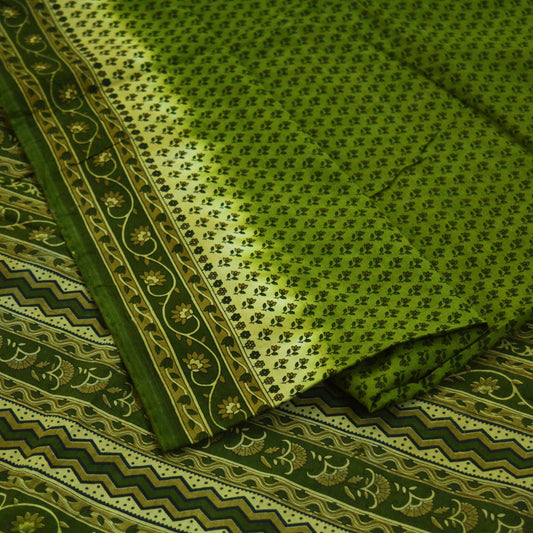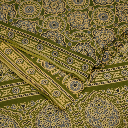 Indian Vintage Sari Green Printed Pure Cotton Saree Craft Soft Fabric 5Yard Sewing Sarong Wrap Boho Floral